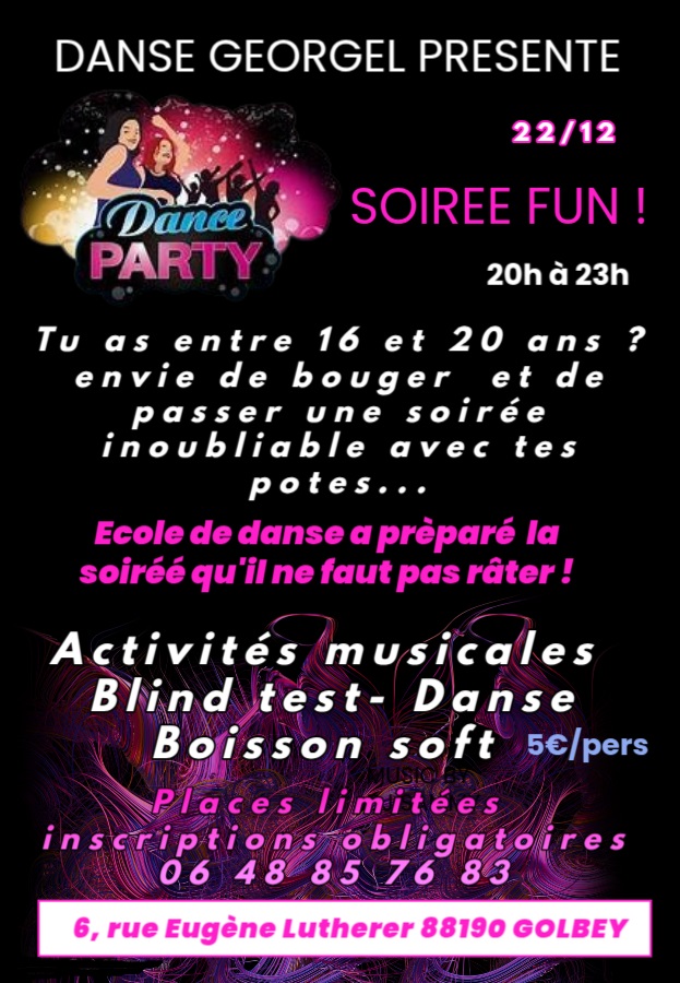 Bienvenue à l'école de danse Pascal Georgel, un lieu où la passion pour la danse se transforme en performance exceptionnelle. Chez nous, nous croyons en l'art de la danse comme moyen d'expression et de transformation. Notre école est bien plus qu'un simple lieu d'apprentissage, c'est une communauté dynamique où les danseurs de tous niveaux peuvent s'épanouir. Sous la direction de M.Georgel, notre équipe dévouée de professeurs vous guide à travers un voyage de découverte de la danse, où la technique rencontre la créativité. Que vous soyez novice ou danseur expérimenté, notre école offre un environnement accueillant et stimulant pour développer vos compétences et explorer votre passion pour la danse. Rejoignez nous et faites partie de notre famille de danseurs déterminés à atteindre leur plein potentiel artistique.